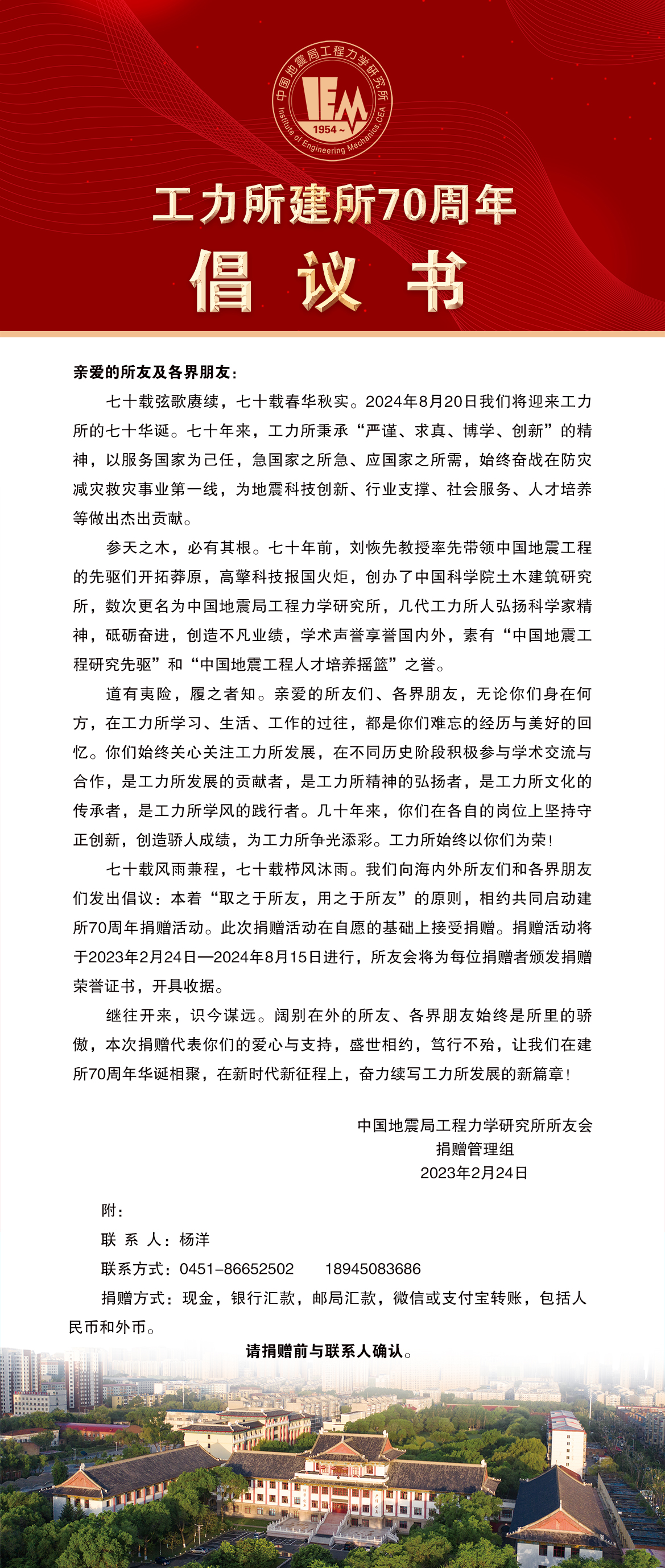 工力所建所70周年倡議書(shū)
