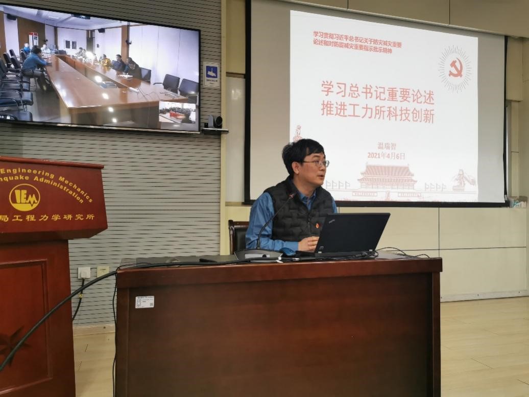 溫瑞智主任同與會科技人員一道共同學習了習近平總書記關于防災減災救災重要論述和防災減災救災重要指示批示精神,對創(chuàng)新在國家發(fā)展全局中處于核心地位分享了自己的認識和思考。科技創(chuàng)新要堅持政治引領,貫徹落實習近平總書記“兩個堅持”“三個轉變”重要論述和“以防為主、防抗救相結合”的工作方針。溫主任結合我所科研工作實際,系統(tǒng)介紹了近年來科技創(chuàng)新工作取得的進展和成績,結合自然災害防治、韌性城鄉(xiāng)、地震應急和科考等生動地闡述了唯有科技創(chuàng)新才是推進防震減災事業(yè)現(xiàn)代化建設高質量發(fā)展的重要動力。最后,溫主任用“夯實監(jiān)測基礎、加強預報預警、摸清風險底數(shù)、強化抗震設防、保障應急響應”作為培訓報告的結語,表達了工力所廣大科技工作者踐行“防震減災,造福人民”的初心使命。