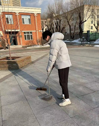 青年志愿者走上街頭開(kāi)展清理打掃活動(dòng),清洗公交站牌、隔離帶、路燈桿等公共設(shè)施,清理積雪、垃圾,保持環(huán)境衛(wèi)生。此外,青年志愿者深入我所研究生生活區(qū),開(kāi)展生活區(qū)清潔清理活動(dòng),清理盥洗室殘留的垃圾、水漬,清理室外人行道上的冰雪和垃圾,為研究生生活和出行提供了便捷。