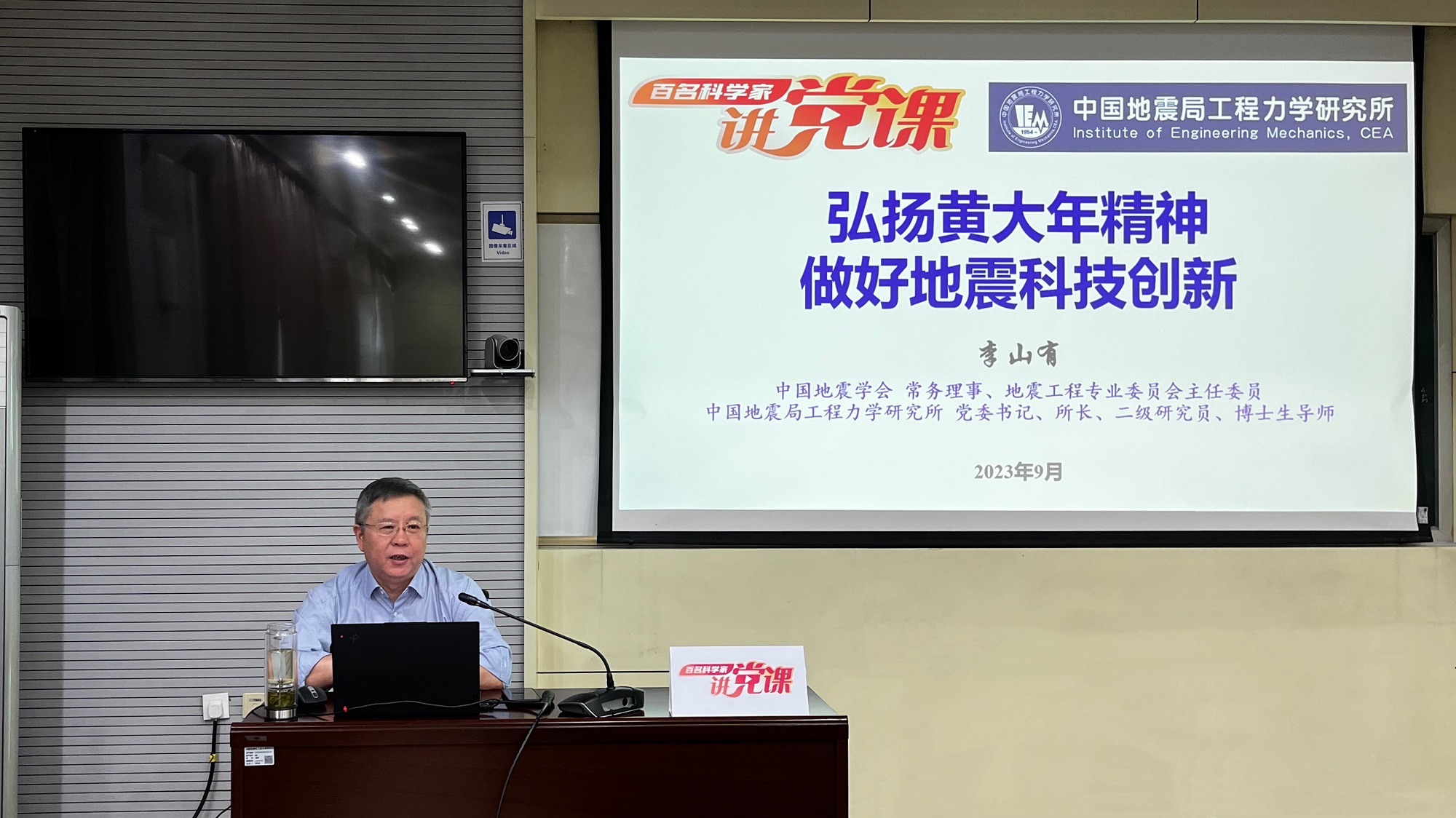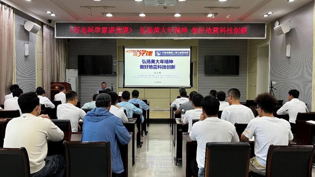 發布時間: 2023-09-15 點擊數量:8072為有效發揮中國科協黨校全國學會分校政治引領“主陣地”、黨性錘煉“大熔爐”作用,中國科協科技社團黨委組織開展了“百名科學家講黨課”活動。受中國地震學會邀請,9月14日,中國地震學會常務理事、地震工程專業委員會主任委員,我所黨委書記、所長李山有同志以《弘揚黃大年精神 做好地震科技創新》為題為所辦計財黨支部、工程地震研究中心黨支部及碩士研究生第二黨支部講授專題黨課。
