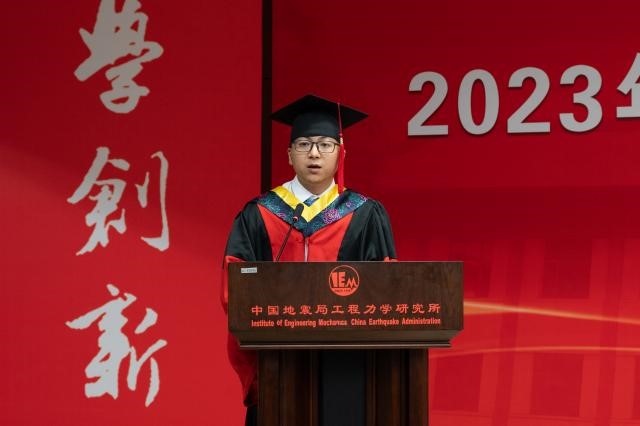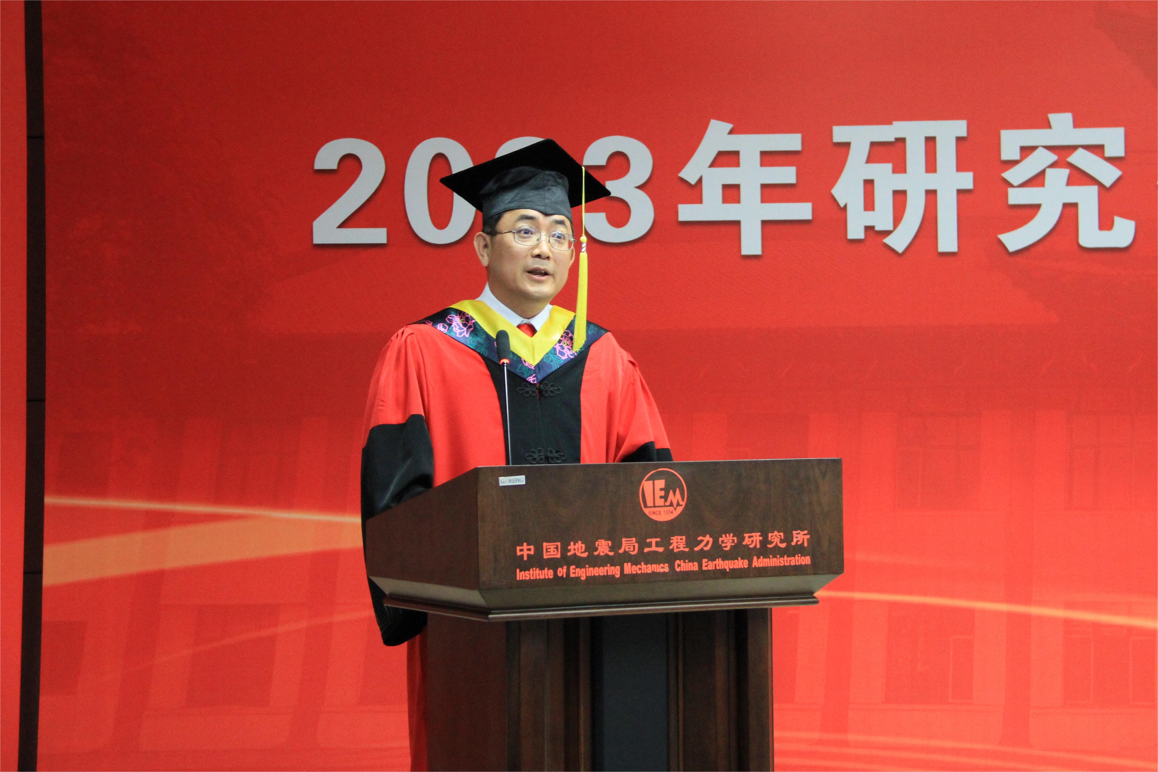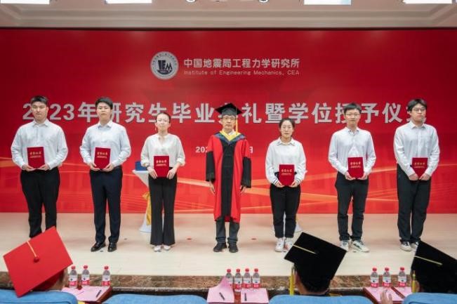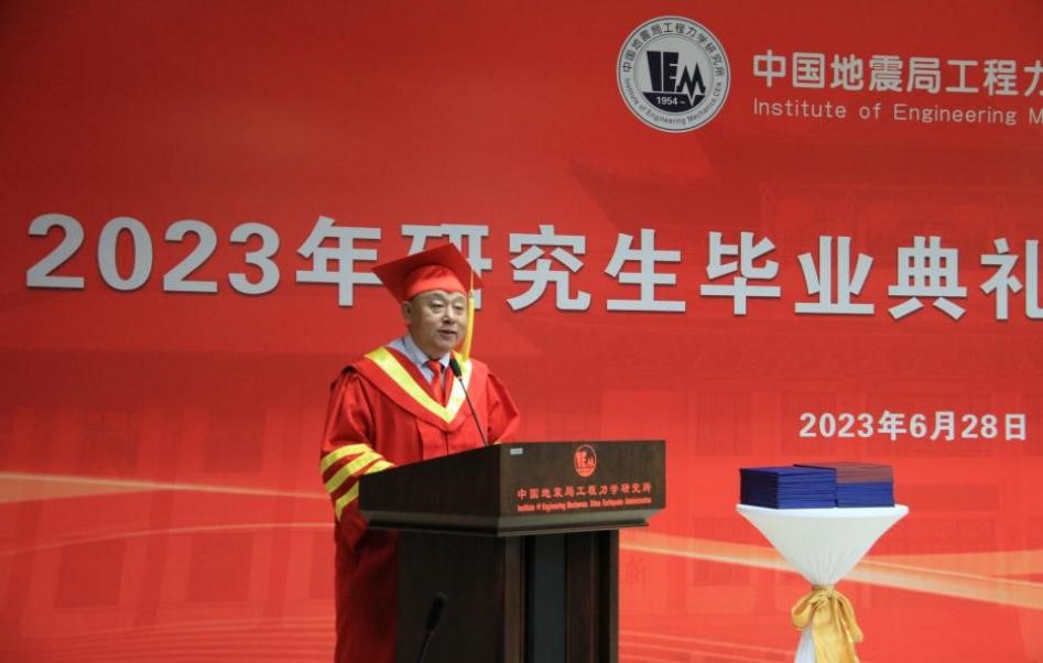 發布時間: 2023-06-30 點擊數量:44746月28日下午,中國地震局工程力學研究所2023年畢業典禮暨學位授予儀式在主樓四樓會議室隆重舉行。所學位評定委員會主任孫柏濤,黨委書記、所長李山有,黨委副書記張孟平,紀委書記孔繁鈺,副所長張令心、溫瑞智出席學位授予儀式。溫瑞智主持儀式。