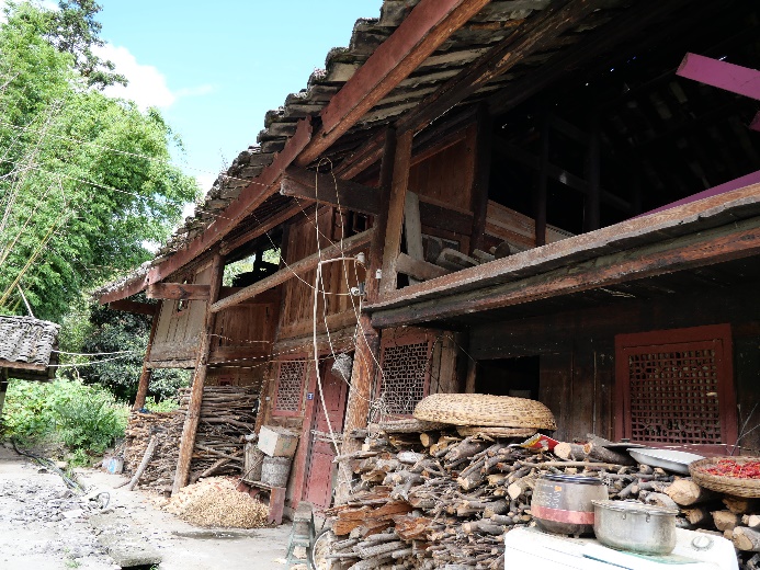 圖2?得妥鎮北頭村2座典型的木結構建筑破壞情況(石-木結構和穿斗木結構)