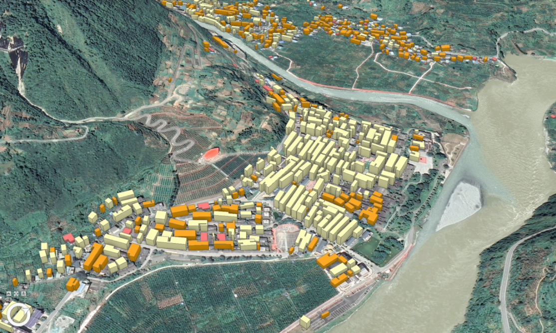 圖1 災區建筑物三維模型(磨西鎮及其周邊)