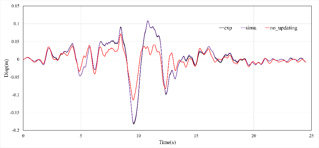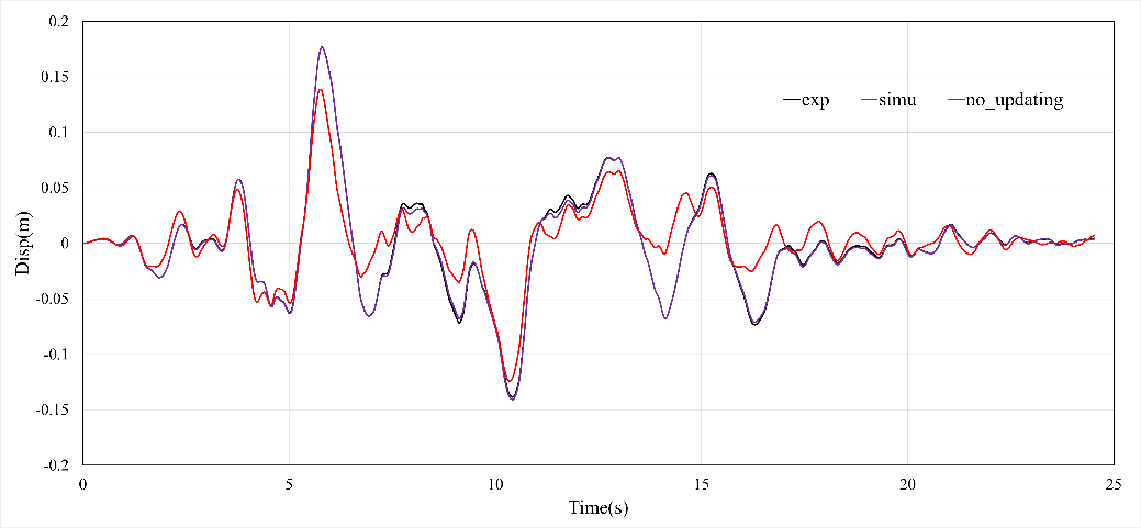 本次試驗基于“華龍一號”核島抗震I類廠房的隔震設計實踐,選取隔震層中一個角部橡膠隔震支座作為試驗子結構,建立核島廠房隔震上部結構的整體化數值子結構模型,采用三向混合試驗技術,其中水平雙向為位移控制加載,豎向為力控制加載,將大噸位、高速度隔震空間加載檢測平臺獲得的試驗子結構的結構響應,作為輸入反饋給數值子結構,將數值子結構計算得到的反力施加給試驗子結構,通過試驗子結構與數值子結構的交互,不斷更新、修正數值模型,較為精確模擬了核島廠房隔震結構在地震作用下的全局響應,為大體量核島廠房隔震結構設計驗證提供了重要支撐。