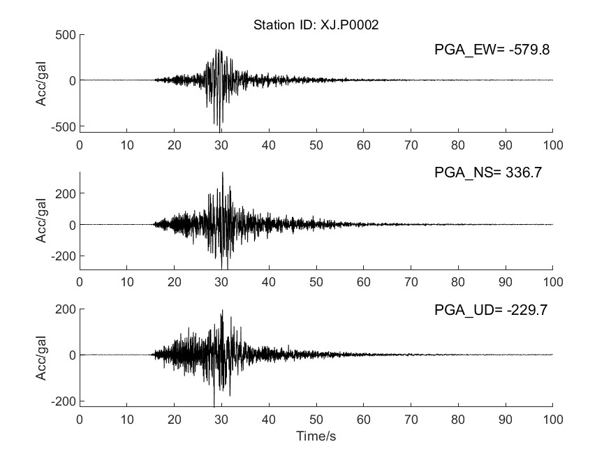 圖4 XJ. P0002臺加速度時程曲線圖