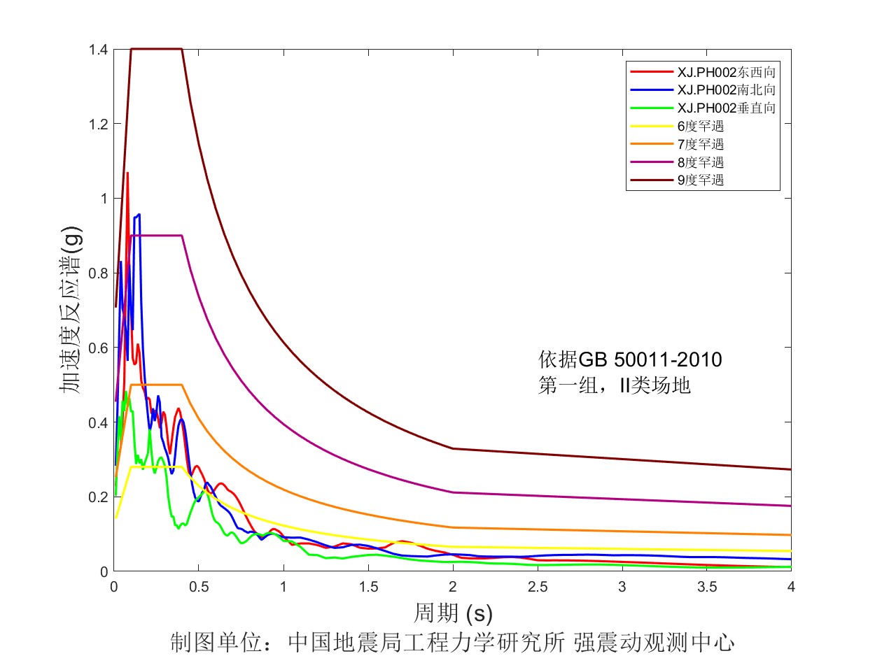 圖5 XJ. P0002臺加速度反應譜圖